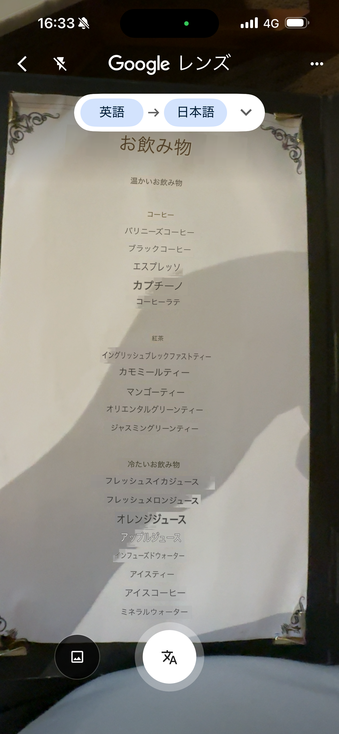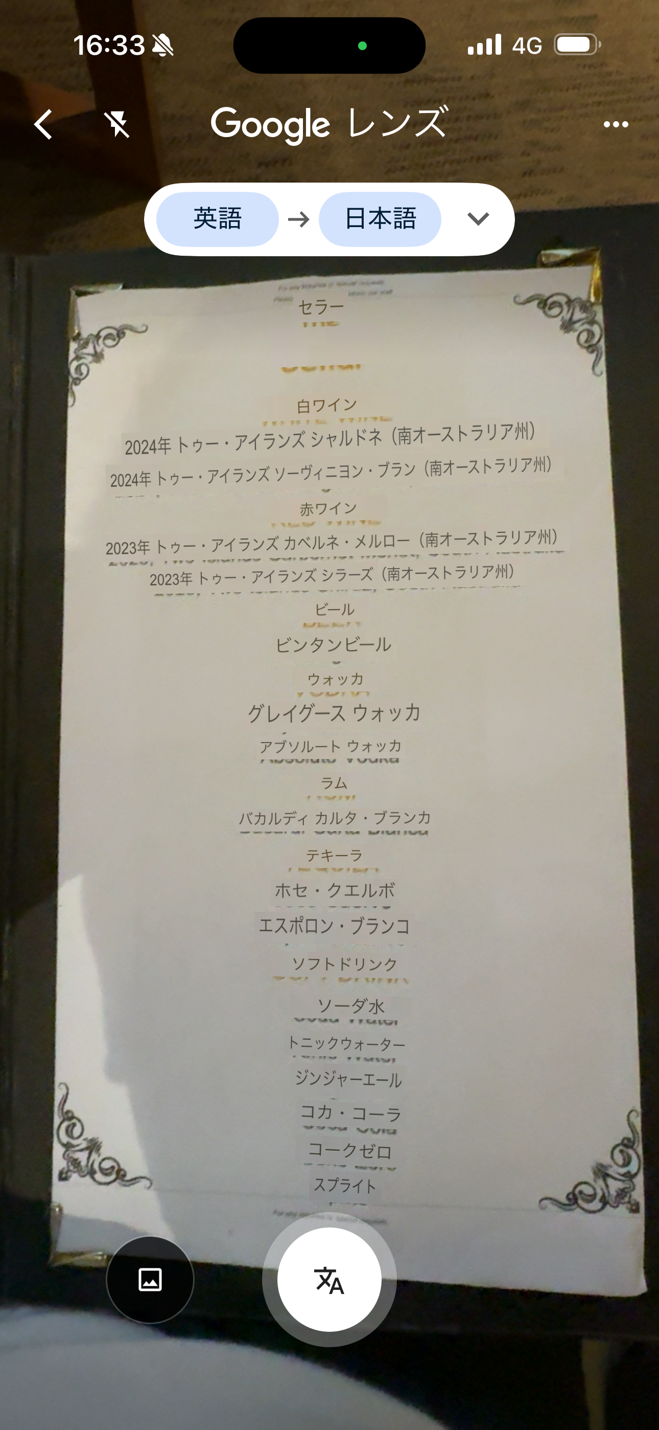 フードはコース料理が勝手に出てくるのかな?と思ってずっと待っていたのですが、なかなか来ないので「フードは無いですか?」と聞くとフードメニューをくれました。