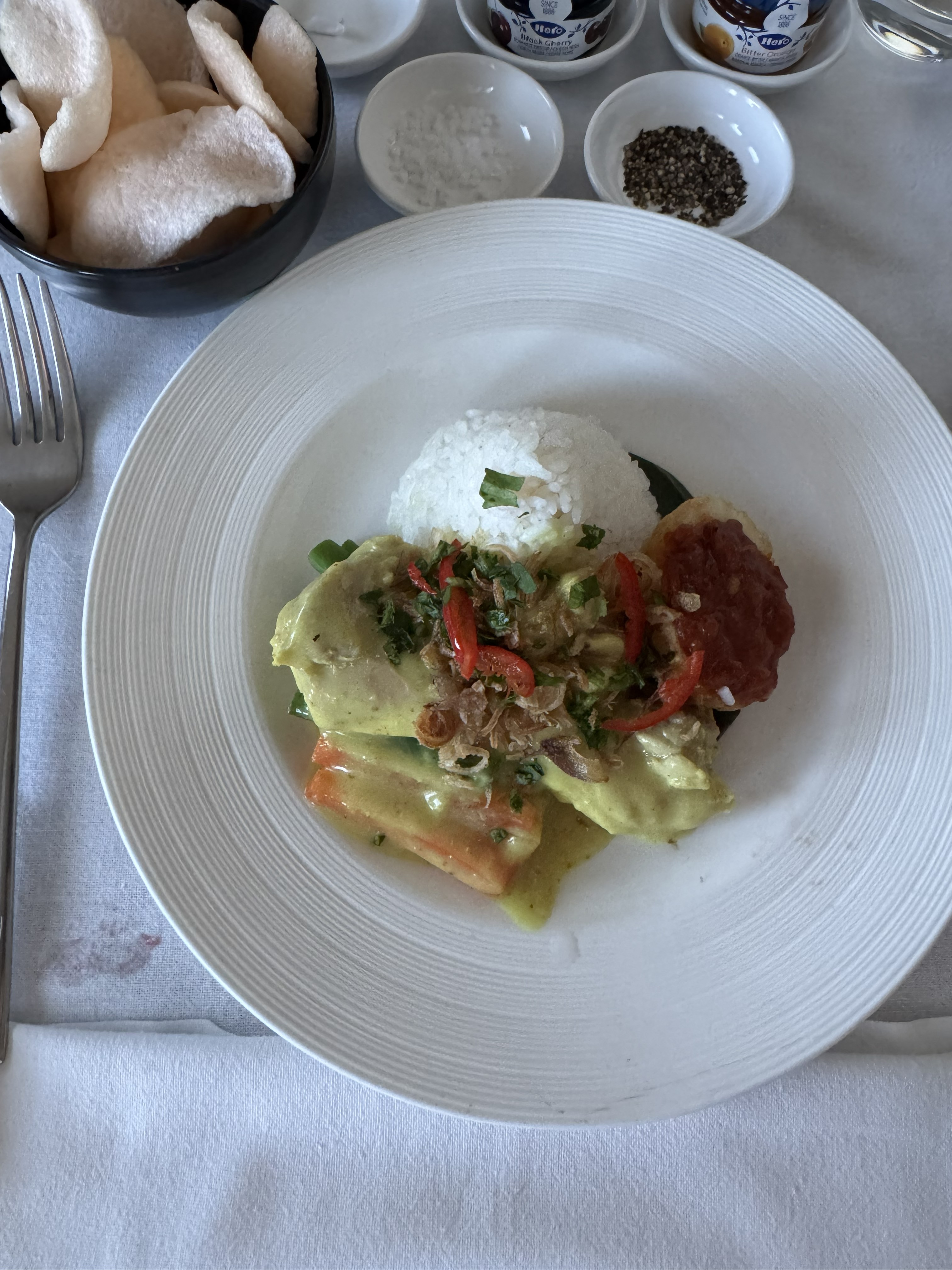 朝食で頂きました。日本料理とインドネシア料理が選べてインドネシア料理を選択。