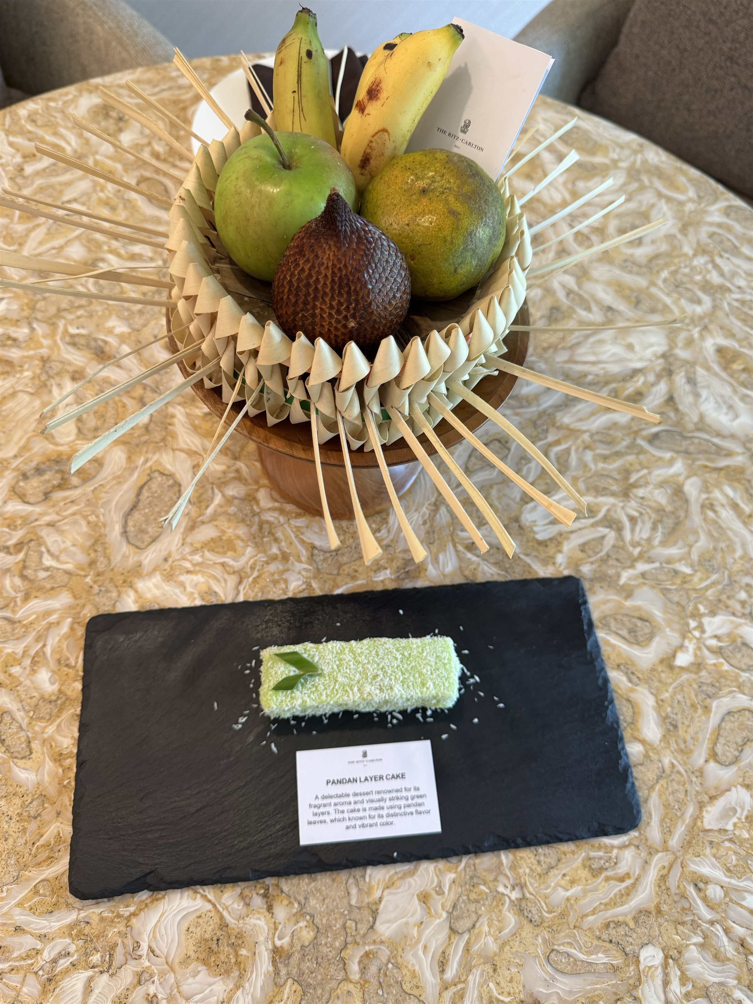 部屋に入るのとスイーツとフルーツが置いてありました。お腹空いてたのですぐに食べましたが、美味しいです。