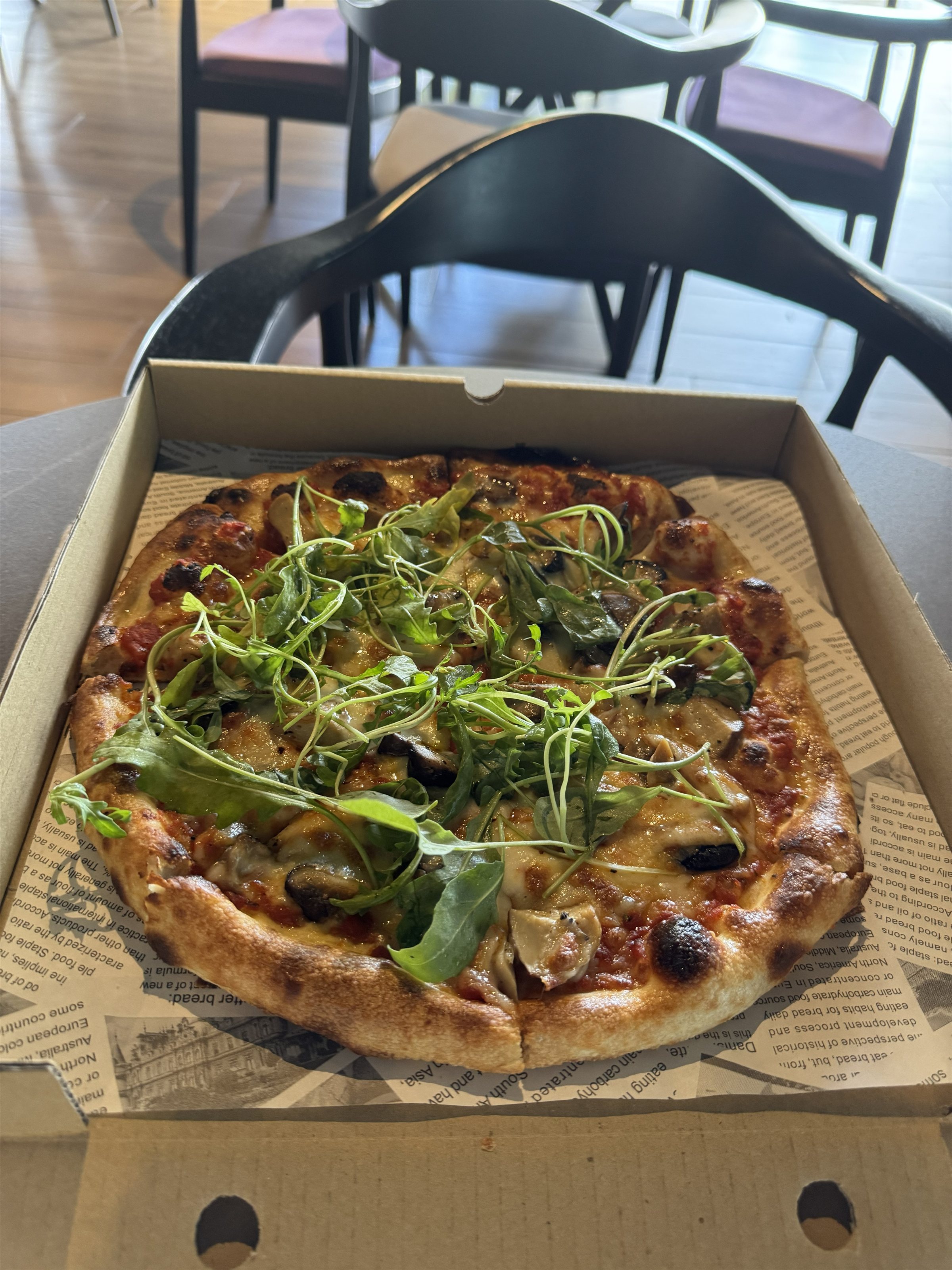 食べ物のメニューはそこまで多くは無いのですが、フンギのピザを注文しました。これがとにかく上手い。